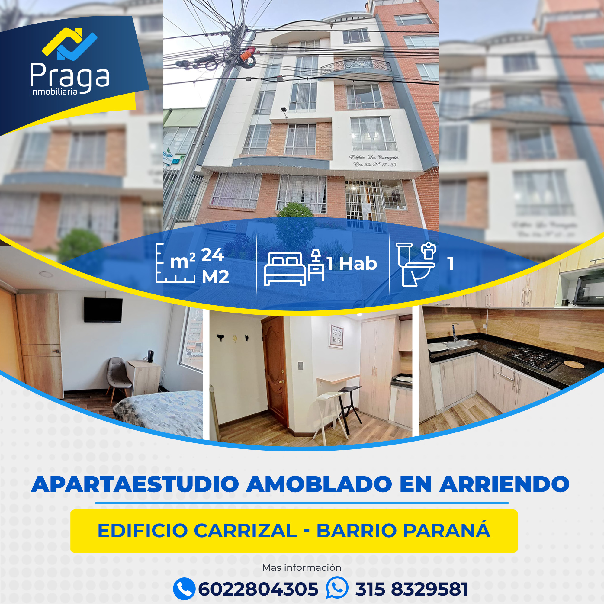 APARTAESTUDIO AMOBLADO EN ARRIENDO – EDIFICIO CARRIZAL, BARRIO PARANÁ