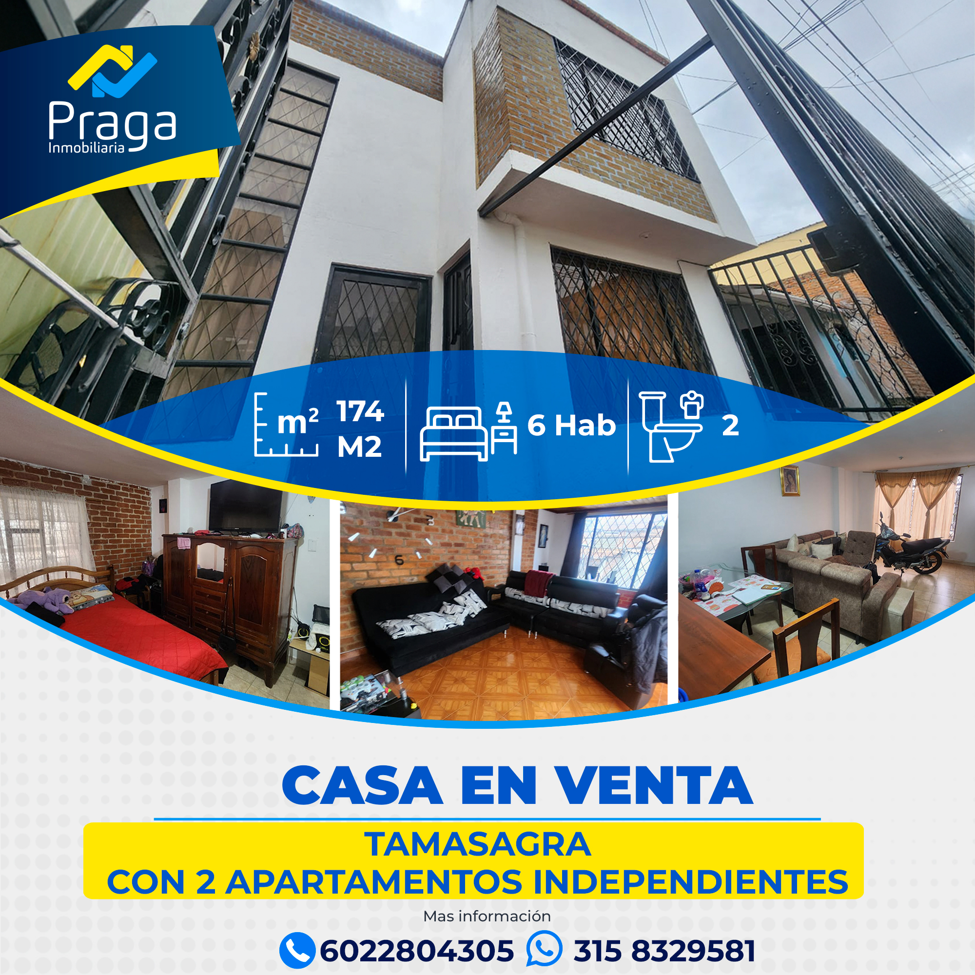 Casa con dos apartamentos, servicios públicos y entradas independientes, ubicada en vía peatonal, a una cuadra del Parque Tamasagra y a dos cuadras de la Iglesia del Niño Jesús de Praga.